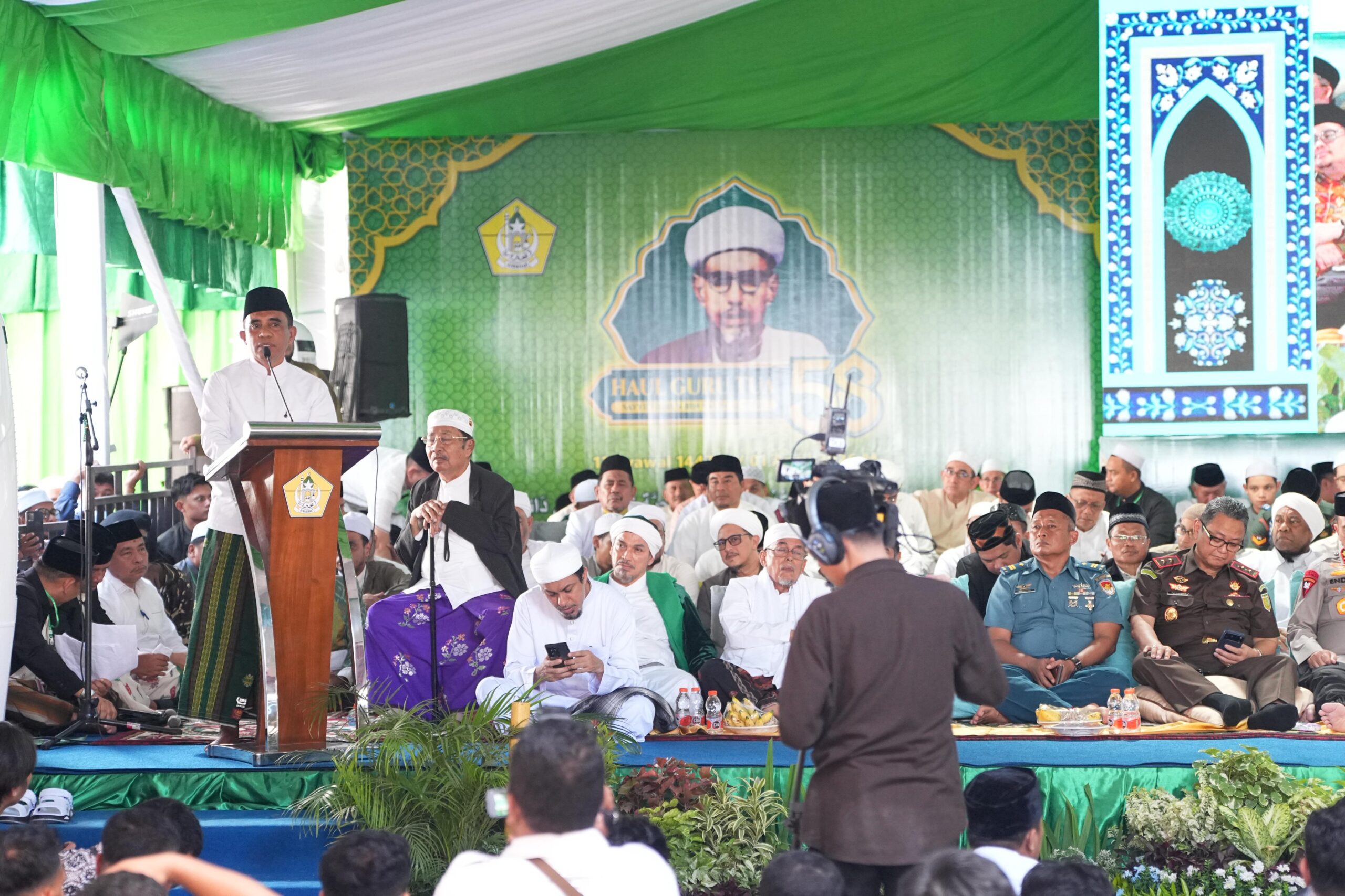 “Tanda cinta kita bukan hanya hadir di haul, bukan hanya memasang foto. Tanda cinta kita adalah melanjutkan perjuangan Guru Tua,” tegasnya.