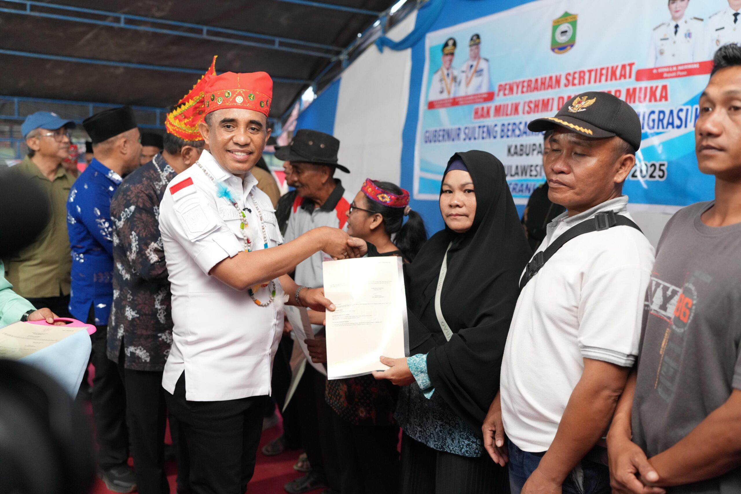 Poso (deadlinews.com) – Warga transmigrasi di Desa Kancu’u, Kecamatan Pamona Timur, Kabupaten Poso, akhirnya mulai menerima Sertifikat Hak Milik (SHM) atas lahan yang telah mereka tempati bertahun-tahun. Penyerahan sertifikat dilakukan pada Jumat (19/11), disaksikan langsung oleh Gubernur Sulawesi Tengah, Anwar Hafid, bersama Ketua TP-PKK Sulteng, Sry Nirwanti Bahasoan.